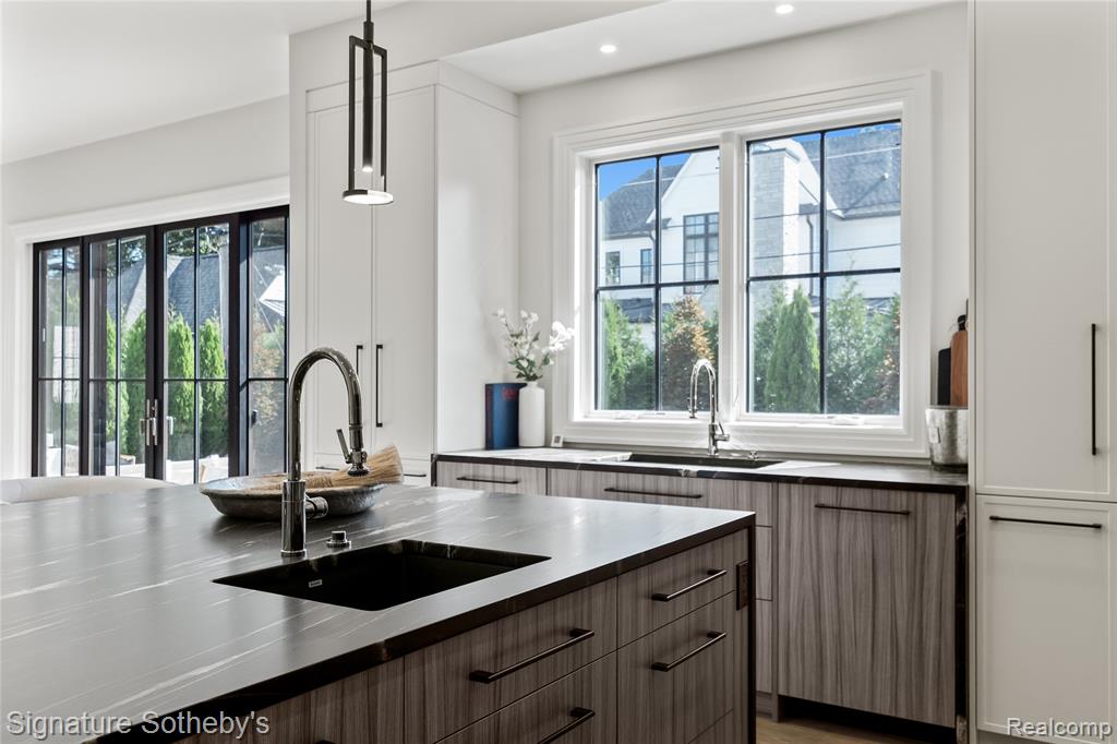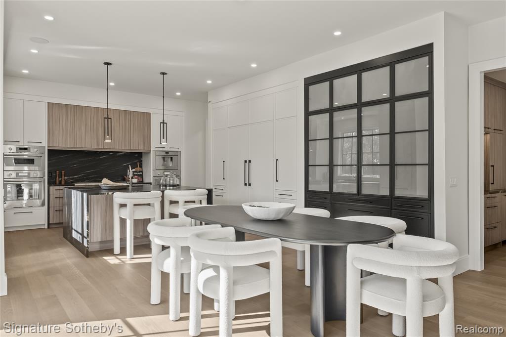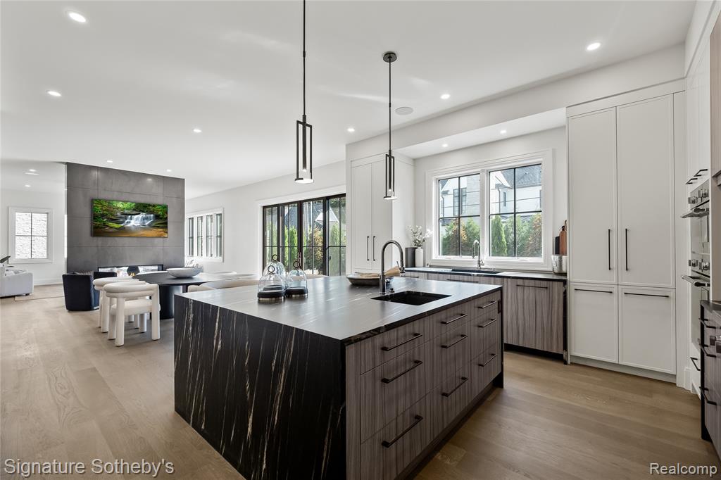 Offering 5 bedrooms, 5.2 baths, and 5,270 sq ft above grade with an addtl 2,003 sq ft of finished lower level, this Sterling Custom Homes residence combines scale with sophistication. Positioned on a .23-acre corner lot, the exterior blends stone and siding for a presence both timeless and modern. Inside, wide-plank hardwood flows through open interiors where natural light enhances layered textures and thoughtful design. Downsview cabinetry frames a chef’s kitchen appointed with Thermador appliances, integrated coffee maker, and a waterfall island topped in leathered granite. From the kitchen, a double-sided fireplace connects seamlessly to the living space, while a wet bar with waterfall counter anchors the entertaining experience. Glass sliding doors off the kitchen nook invite light and open to a landscaped yard with an aggregate patio and fire pit. A porcelain-tiled wine room complements the formal dining space, while a private office provides retreat. Upstairs, the primary suite impresses with a tray ceiling, private fireplace, expansive walk-in closet, and a spa-inspired bath featuring dual vanities, soaking tub, and steam shower. Secondary bedrooms each enjoy their own en-suite bath, creating comfort and privacy throughout. A spacious loft adds flexibility, ideal as a second office, study space, or play area. The finished lower level continues the lifestyle with hardwood flooring, a full bar, guest suite, additional bath, and a flex room ready for fitness or a golf simulator. Everyday convenience is elevated through Control4 automation, security cameras, and a heated two-car garage with epoxy flooring. A residence crafted with precision, balancing architectural presence with functional ease, designed for both grand entertaining and comfortable daily living. (Please note that the pool and modified exterior paint are not included in the base price and may be added as optional features.) |