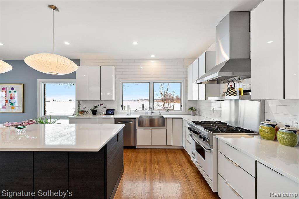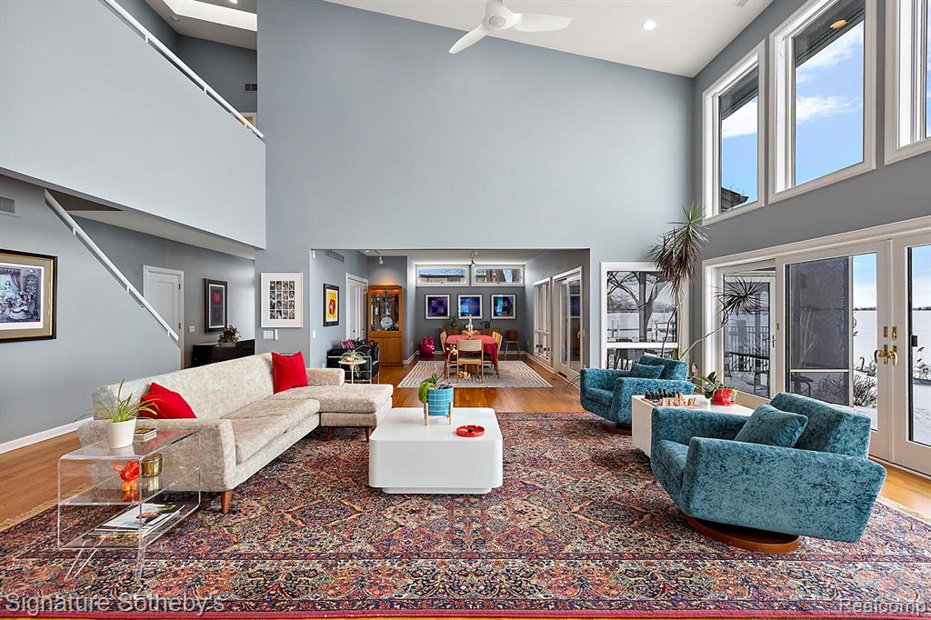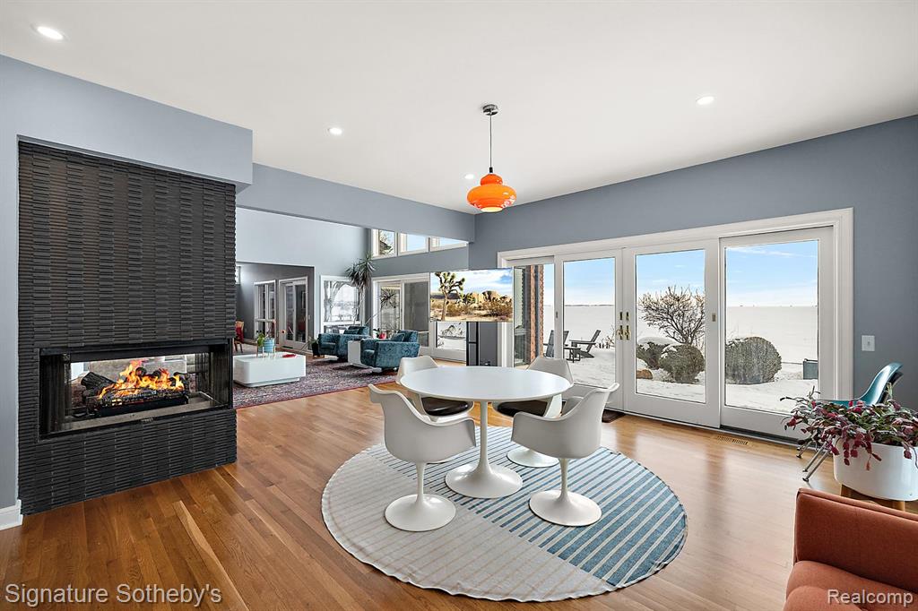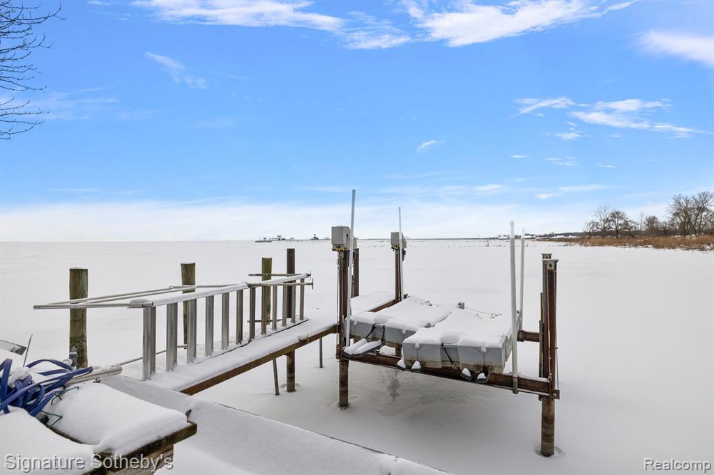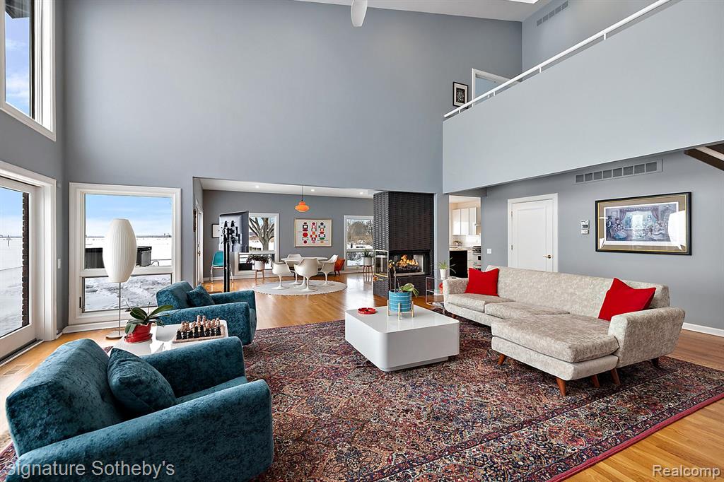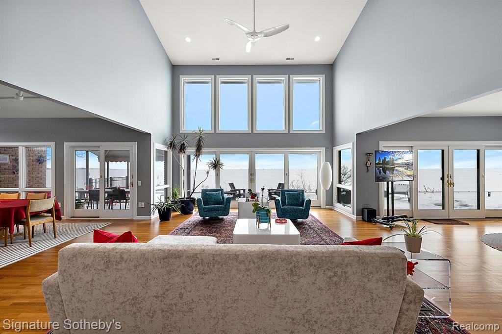 Breathtaking lakefront retreat with 250 feet of incredible Lake Saint Clair frontage and panoramic views! This custom designed home features a brand new sea wall, boat hoist, dock and Trex deck! Spacious open floor plan with an abundance of natural light and floor to ceiling sky lights. Large chef’s kitchen with custom cabinets and granite and quartz counters, new Viking and sub-zero appliances. Family room features custom built-in cabinets. Primary bedroom boasts two large walk-in closets, his/hers bathrooms and a private balcony with stunning lake views. Massive second floor flex room, a lakeside screen porch, and a large 4 car heated garage make this property an absolute must see. Recent upgrades also include oak flooring throughout, ventless gas fireplace, whole house Generac system, full roof replacement, exterior painting, interior painting, new air conditioning and furnace, hot water heater, Sundance hot tub, gutter guards and windows! |