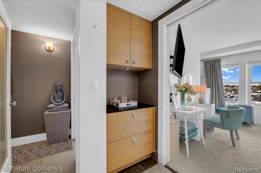 Positioned in the heart of downtown Birmingham, this refined residence offers 1 bedroom, 1.1 bathrooms, overlooking Old Woodward, presenting a polished urban retreat with a distinctly editorial sensibility. Clean lines, intentional finishes, and an effortless flow define the interior, aligning with a modern inspired aesthetic. A sleek kitchen anchors the space, outfitted with premium appliances including a built-in Sub-Zero refrigerator, streamlined cabinetry, and an open layout that connects seamlessly to the living room. Natural light fills the living area, extending outward to a west-facing balcony where views stretch across Birmingham and glowing sunsets frame the skyline. An oversized primary suite delivers both comfort and function, enhanced by custom built-ins that maximize storage while maintaining a tailored, minimalist feel. In-unit laundry adds everyday convenience without compromising design. Residents enjoy a full suite of amenities including a secure building with controlled lobby access, underground heated parking, and a 24/7 lobby concierge. A rooftop terrace, open during the summer months, offers an ideal setting for entertaining or unwinding above the city. This residence blends sophisticated design with effortless downtown living in one of Birmingham’s most desirable locations. |