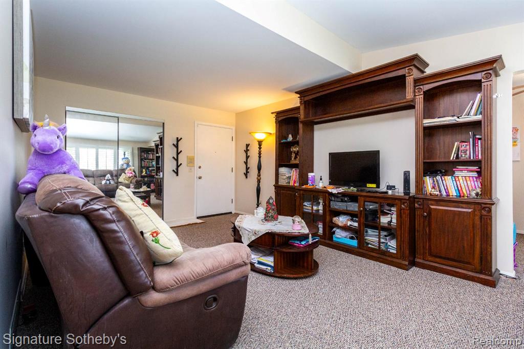 BEAUTIFULLY appointed & squeaky clean UPDATED second floor condo in the Birmingham North complex. This unit boasts Southwest exposure providing lovely daily sunlight adding comfort and pleasure. Great open floor plan. Large working kitchen with NEW cabinets and counter space that overlooks the dining and living rooms. Main bath has been updated, NEW vanity, paint & lighting. Roof 2 years, newer carpet, warm paint color selections, NEW kitchen appliances and newer hot water heater. Expansive living room with access to the cozy library/study which can be used as a den, private study room or even a small third bedroom...there is a closet! Not all condos in this complex have this library/study. Primary suite with its own lav. Condo is as clean as a whistle. Laundry area in the basement along with nice storage space. Washer and Dryer included also. Award winning Birmingham Schools...Pembroke, Derby and Seaholm. Walking distance to Derby Middle School and Downtown Birmingham. Complex pool can be enjoyed on those warm summer days. Nicely treed courtyard and grounds. Carport included. |